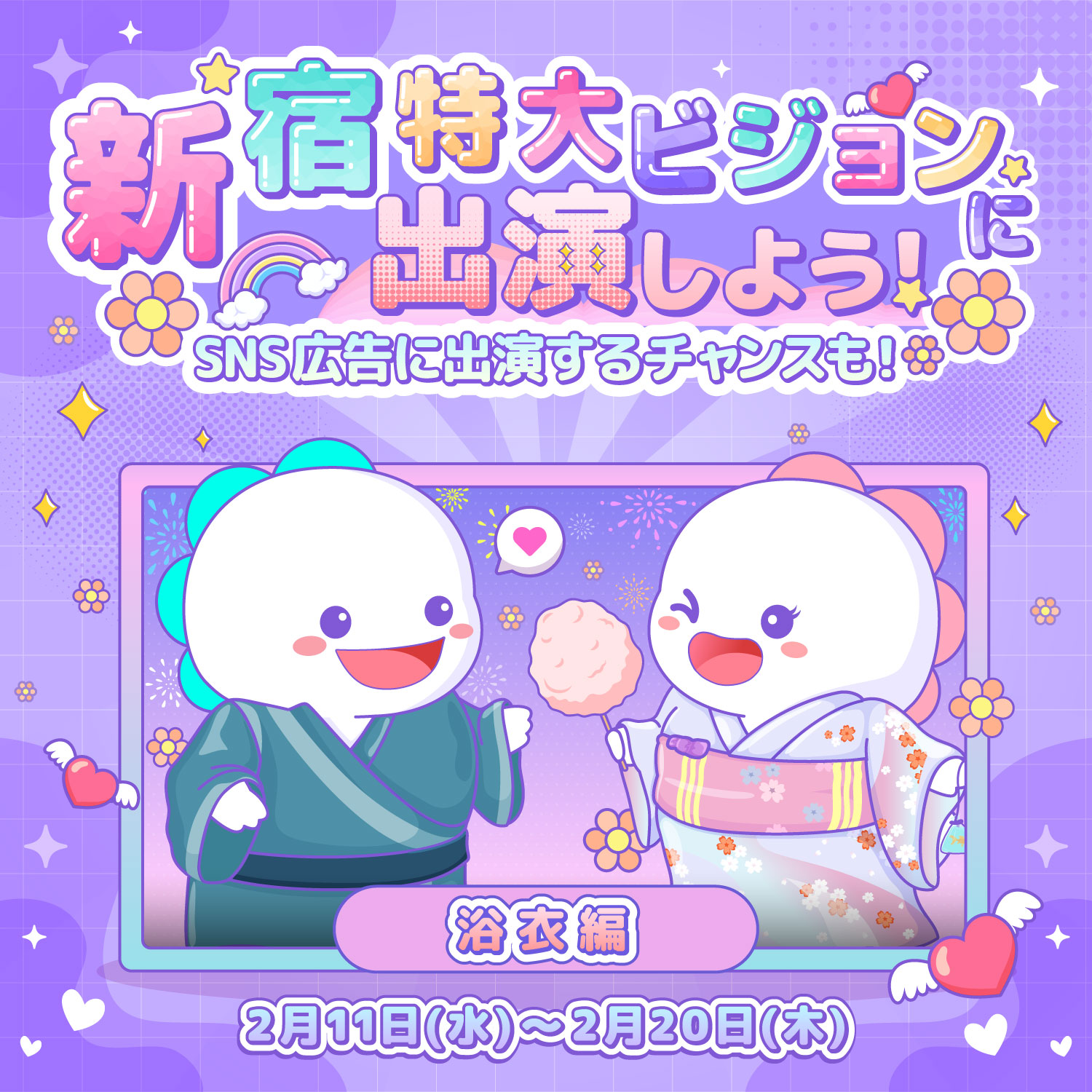 BIGO LIVE開催のイベント「新宿特大ビジョンに出演しよう!浴衣編」に参戦し、TLA所属クリエイターみぴ🎀💠さんが見事全力チャレンジにて総合2位を獲得しました!