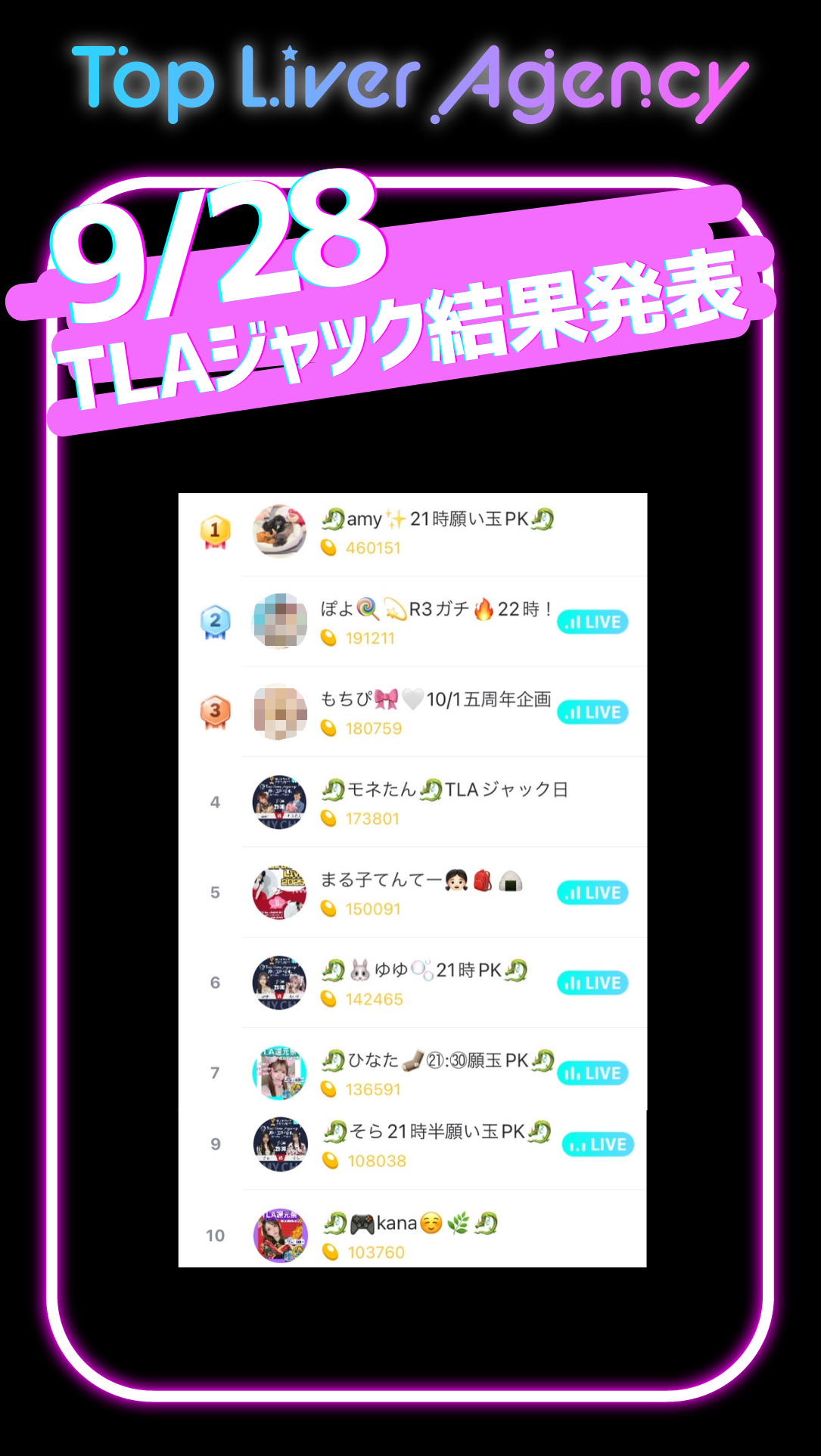 本イベントは、BIGO LIVEの日本デイリーランキングをTLA所属クリエイターで埋め尽くすことを目標に掲げた、事務所全体の団結イベントです。